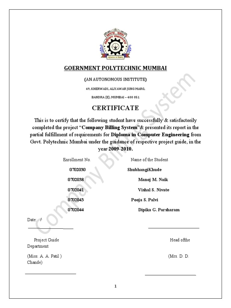 Govt. Polytechnic Mumbai under the guidance of respective project guide, in the