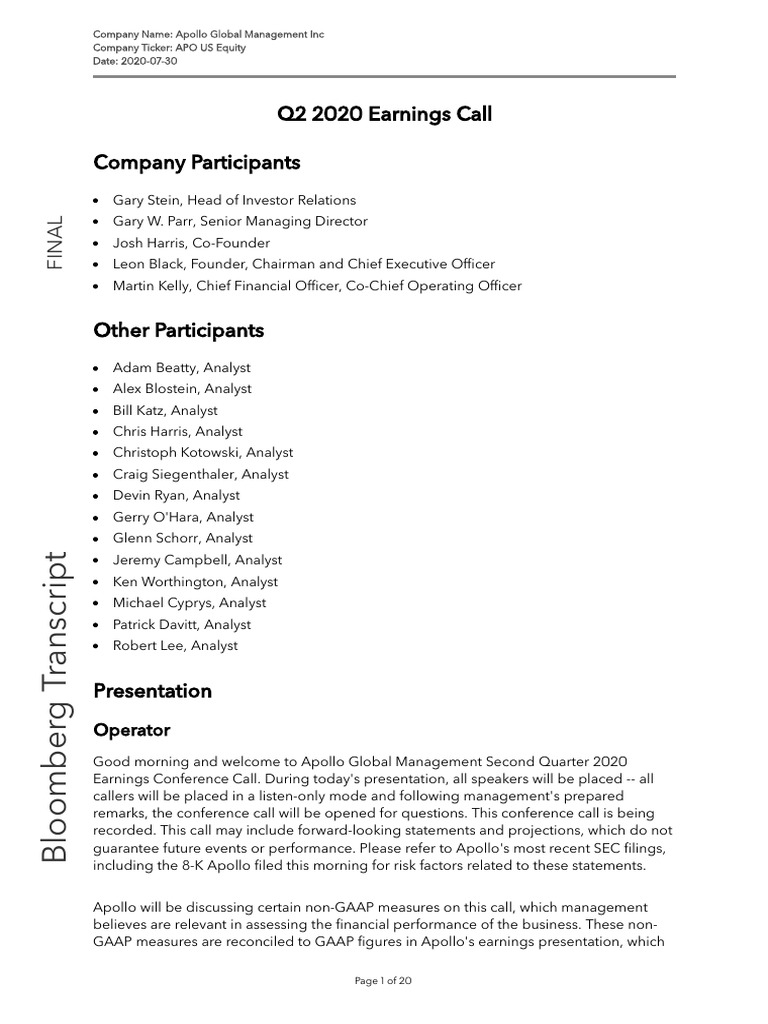 Apollo will be discussing certain non-GAAP measures on this call, which management