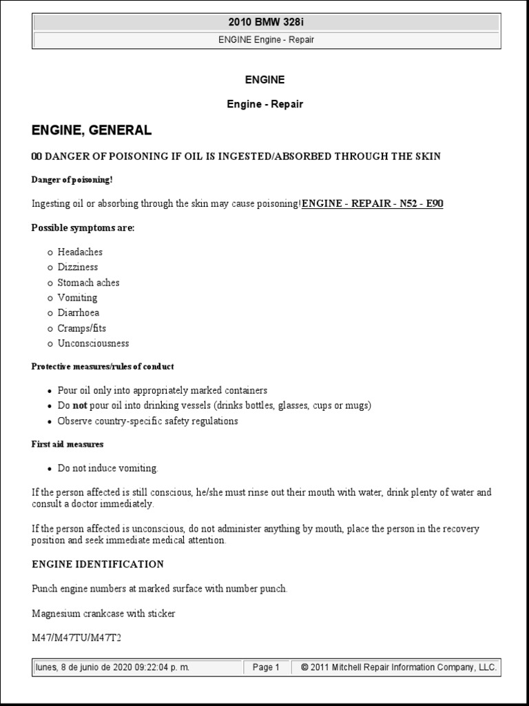 Ingesting oil or absorbing through the skin may cause poisoning!ENGINE - REPAIR - N52 - E90