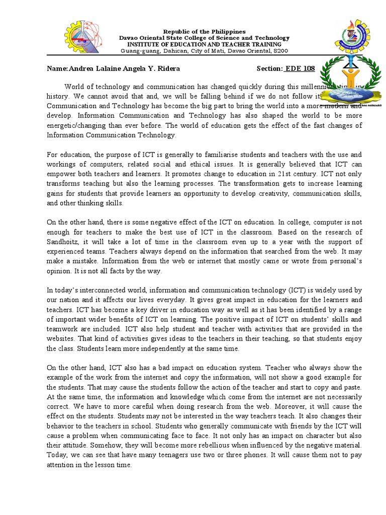 our nation and it affects our lives everyday. It gives great impact in education for the learners and