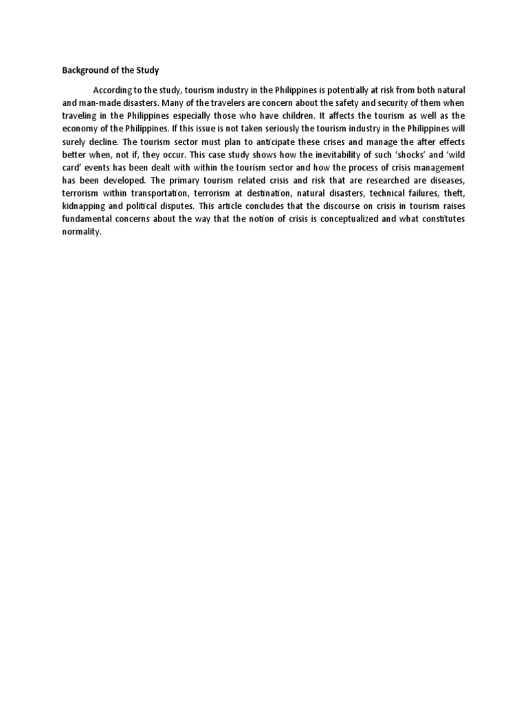 economy of the Philippines. If this issue is not taken seriously the tourism industry in the Philippines will