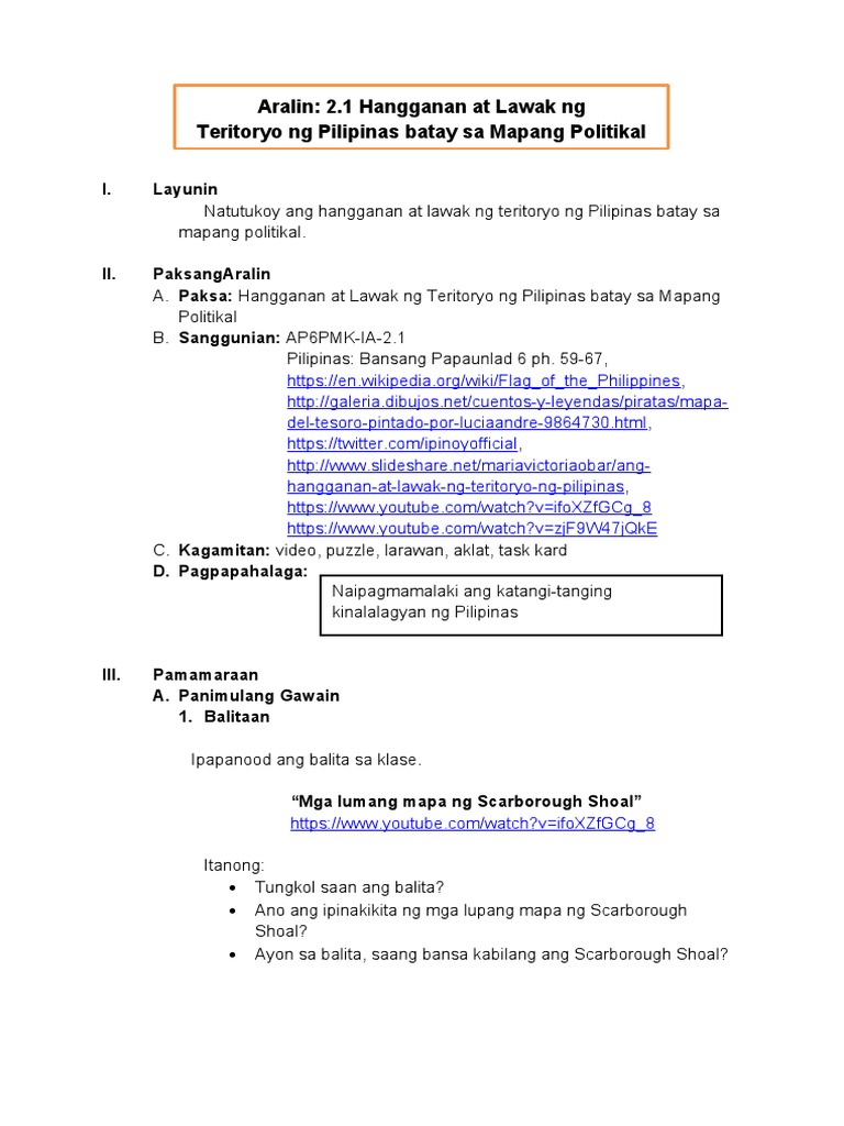A. Paksa: Hangganan at Lawak ng Teritoryo ng Pilipinas batay sa Mapang