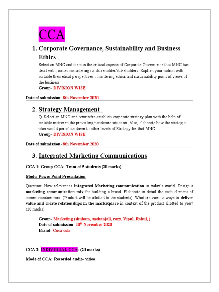 CCA 1 – Group Assignment – (20 marks)