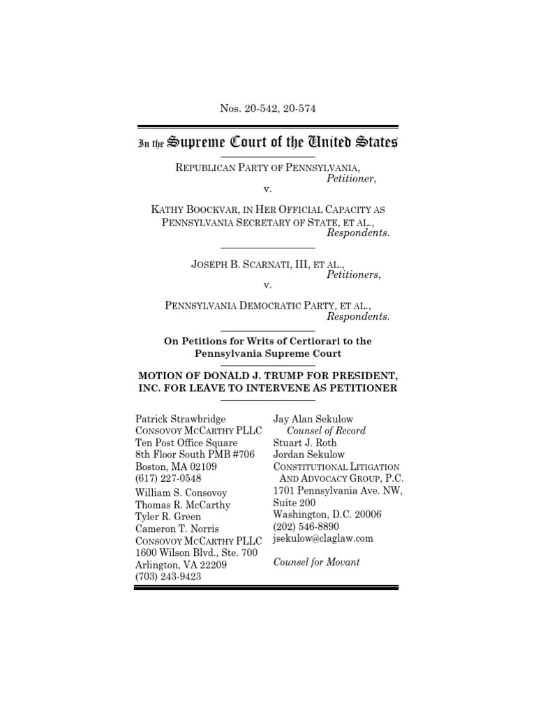 MOTION OF DONALD J. TRUMP FOR PRESIDENT,INC. FOR LEAVE TO INTERVENE AS PETITIONER