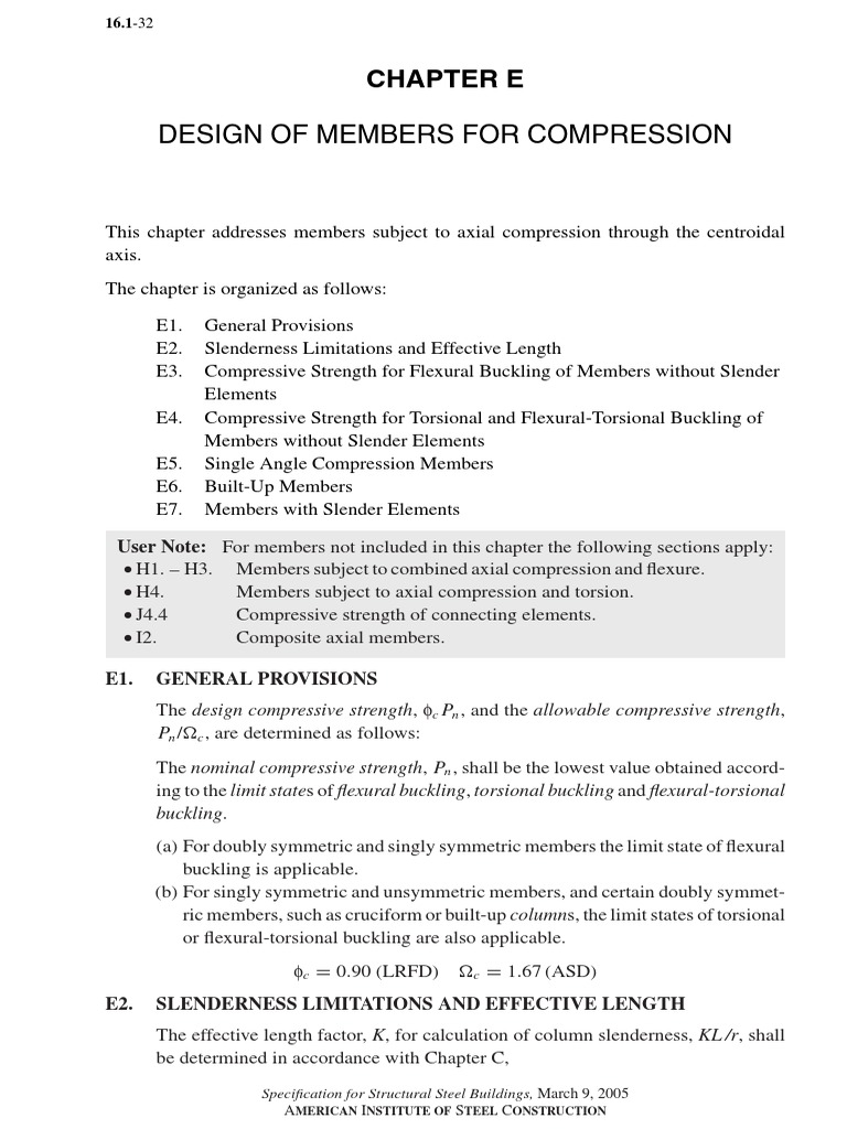 Sect. E3.] COMPRESSIVE STRENGTH FOR FLEXURAL BUCKLING 16.1-33