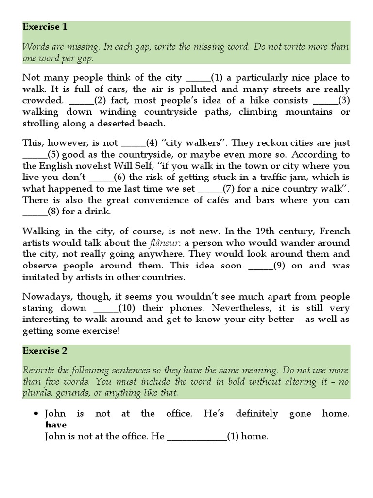 Words are missing. In each gap, write the missing word. Do not write more than
