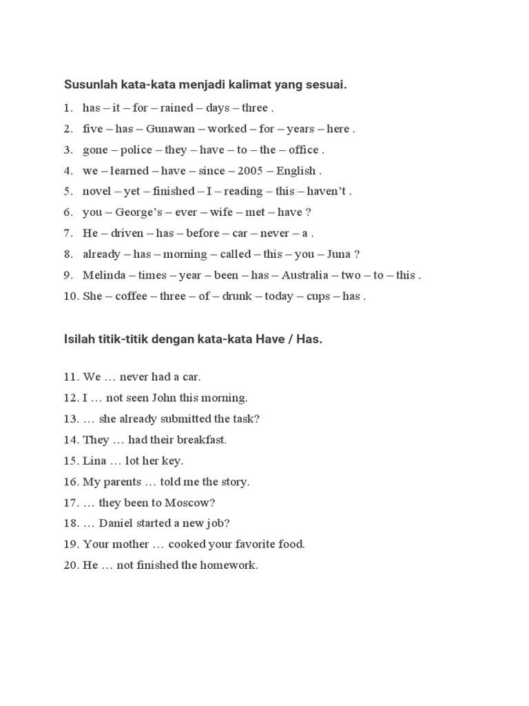 Susunlah kata-kata menjadi kalimat yang sesuai.