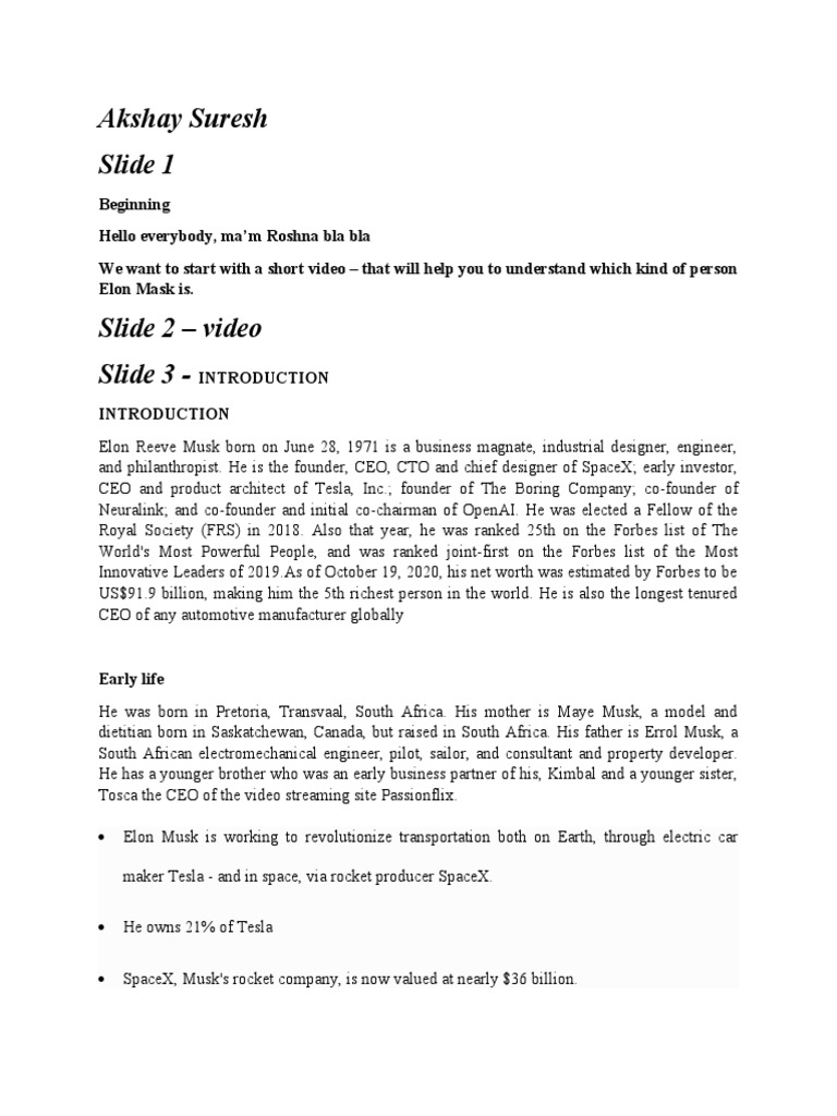 and philanthropist. He is the founder, CEO, CTO and chief designer of SpaceX; early investor,