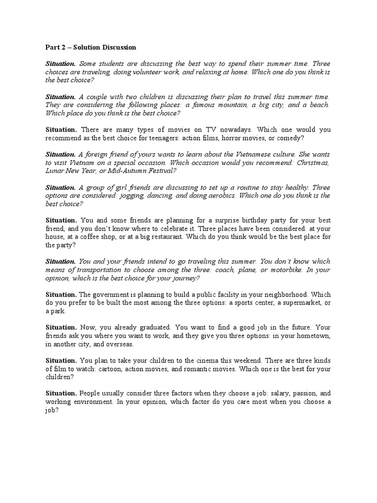 Situation. You and your friends intend to go traveling this summer. You don’t know which