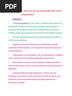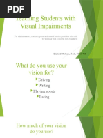 complete the activities of everyday life. Students with visual impairments are infants, toddlers,