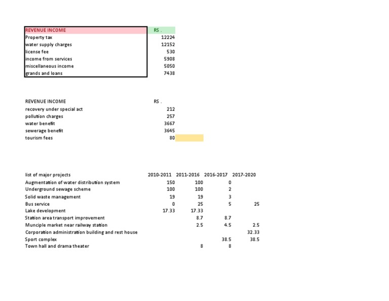 list of major projects 2010-2011 2011-2016 2016-2017 2017-2020