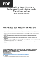 private beliefs and biases about race and racism, influenced by our • Lack of access to healthy food and water for POC