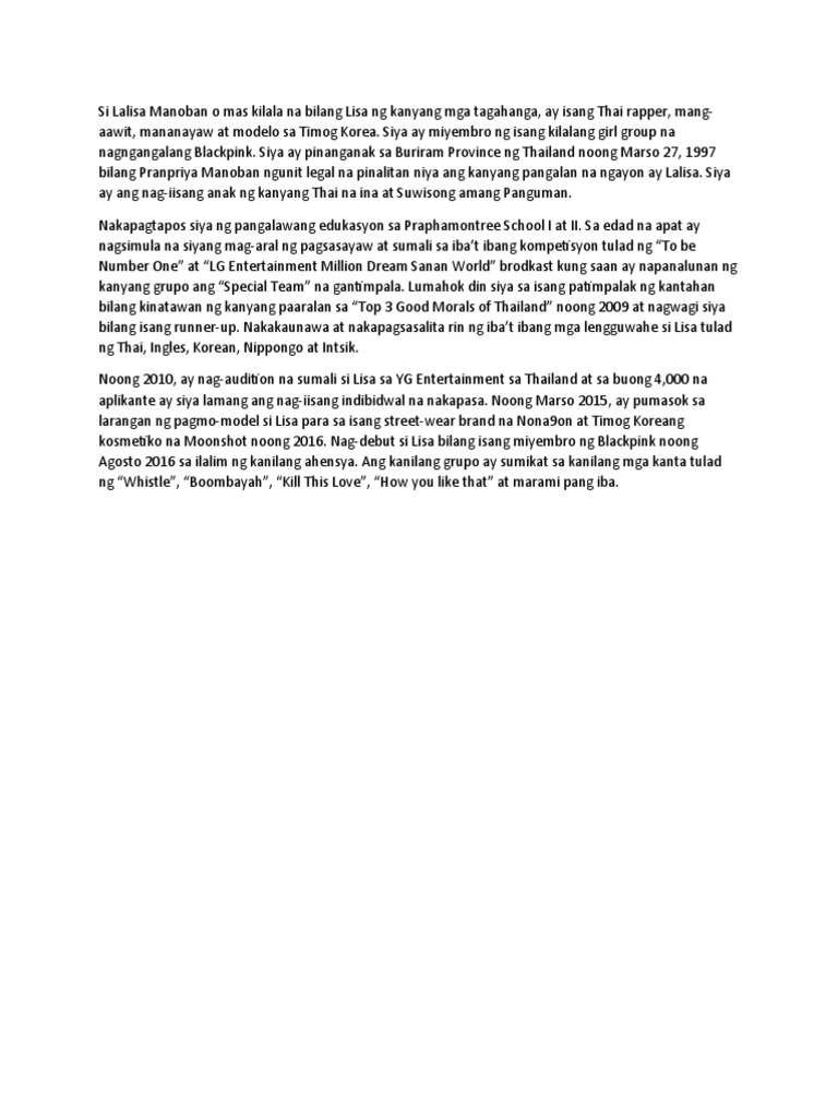 Si Lalisa Manoban o mas kilala na bilang Lisa ng kanyang mga tagahanga, ay isang Thai rapper, mang-