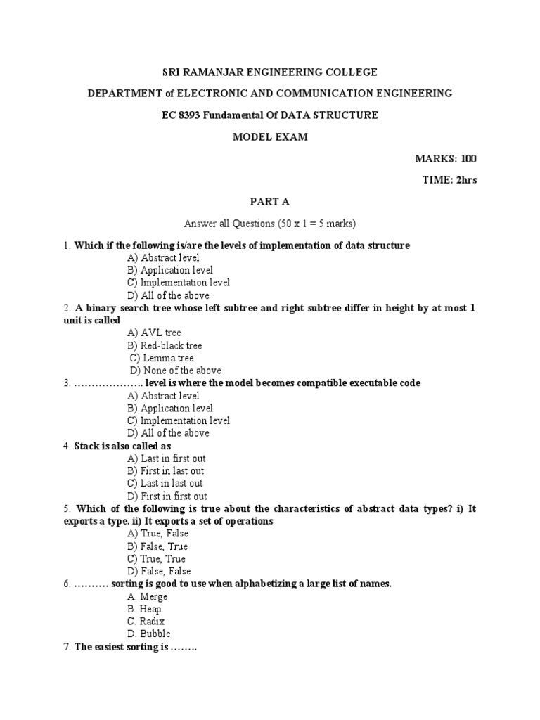 5. Which of the following is true about the characteristics of abstract data types? i) It