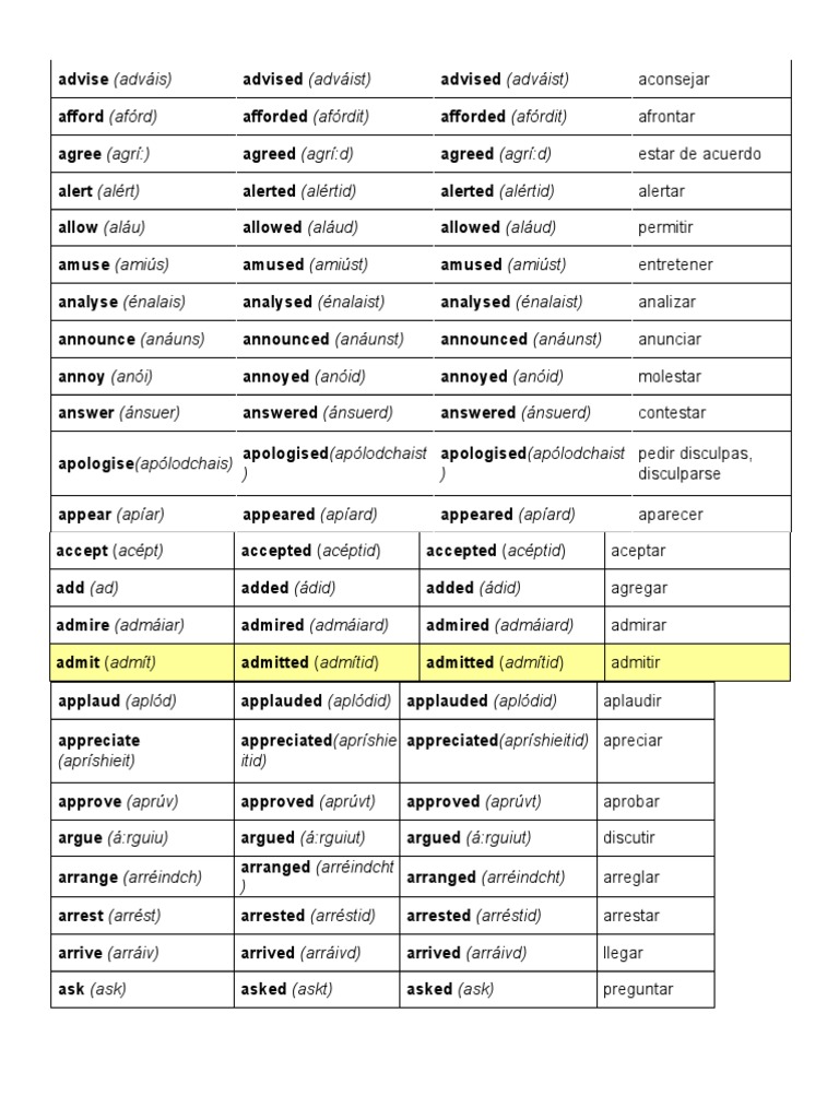 admit (admít) admitted (admítid) admitted (admítid) admitir