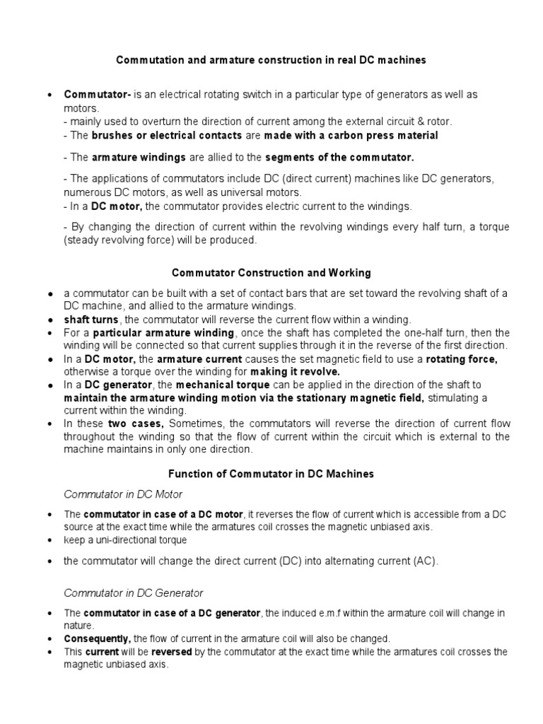 - The applications of commutators include DC (direct current) machines like DC generators,