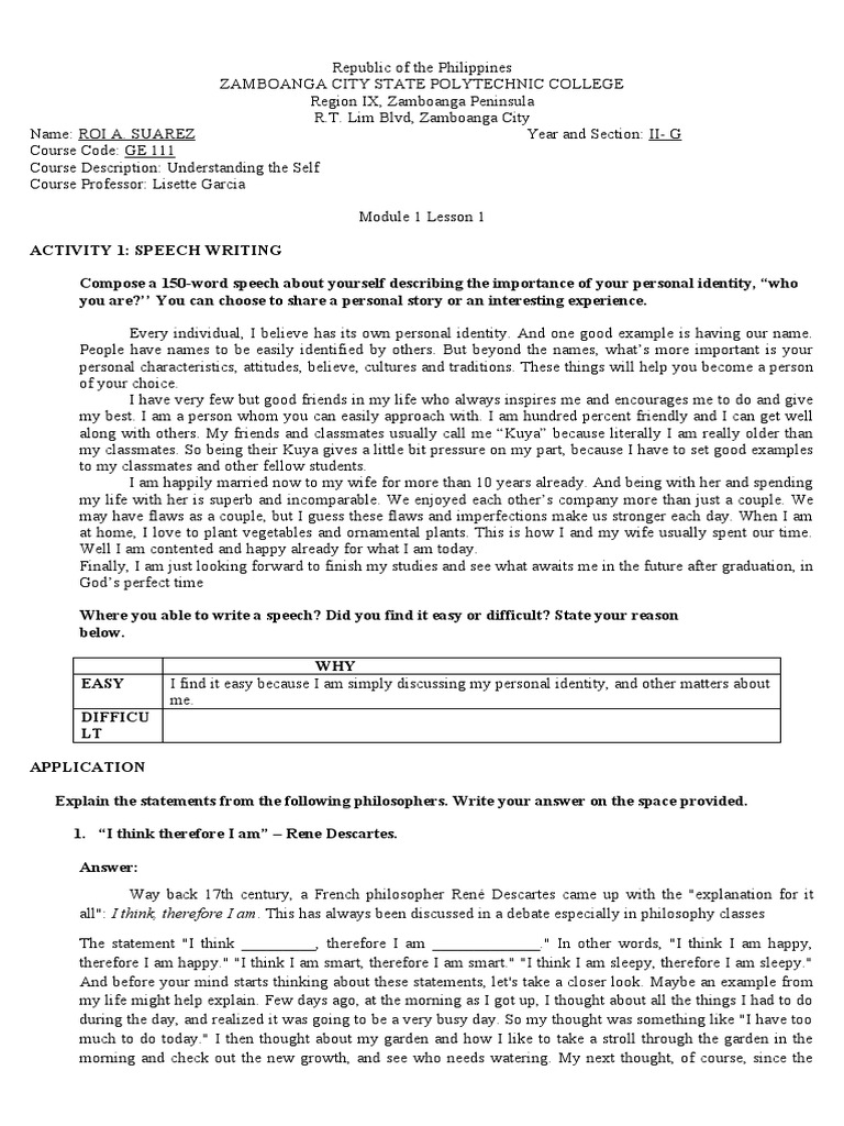 Compose a 150-word speech about yourself describing the importance of your personal identity, “who