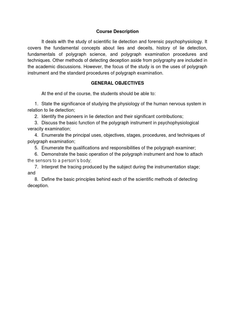 fundamentals of polygraph science, and polygraph examination procedures and