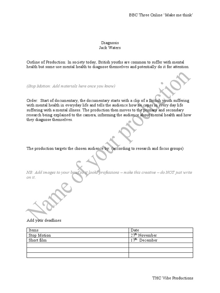 NB: Add images to your brief so it looks professions – make this creative – do NOT just write