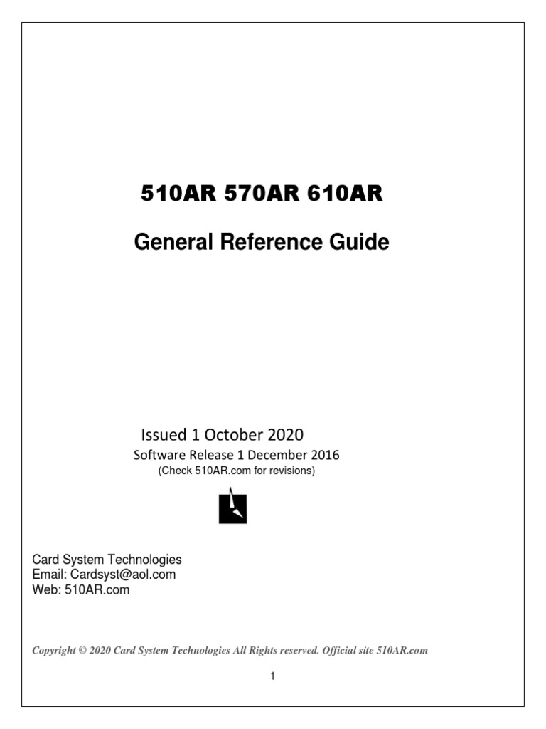510AR 570AR 610AR General Reference Guide: Issued 1 October 2020