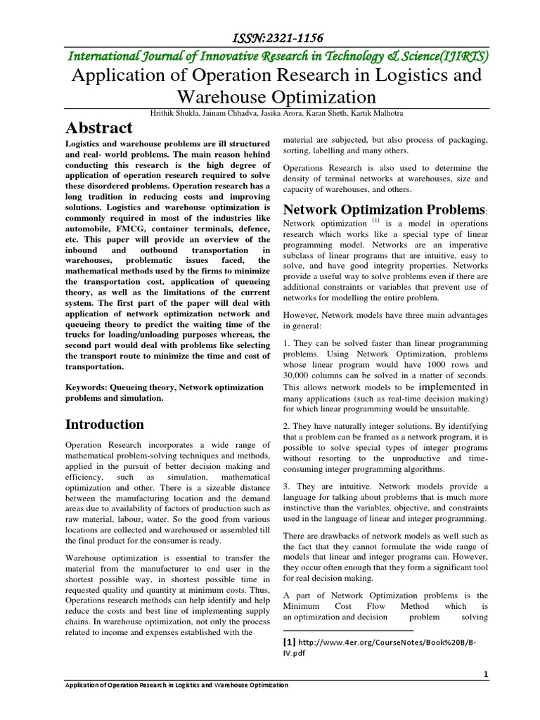 Application of Operation Research in Logistics and Warehouse Optimization
