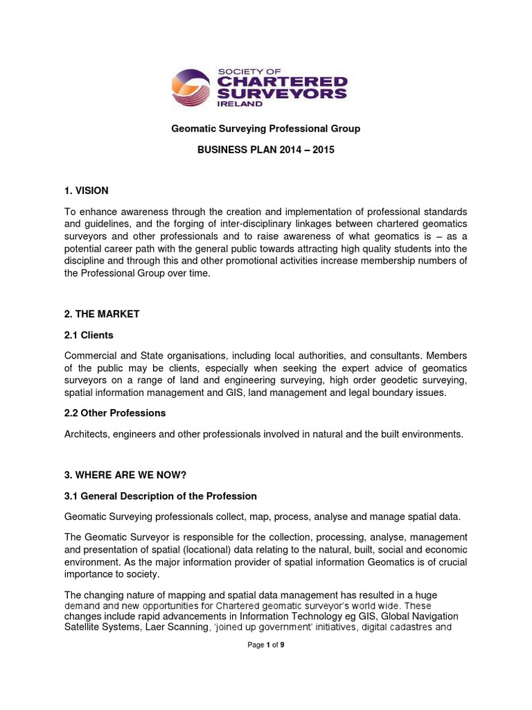 The geomatic surveying profession overlaps with other professions. In Ireland a clear market