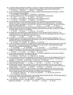 8. Ahollow shaft that has 100 mm outside diameter and 80 mm inside diameter is used to transmit 100 KW at