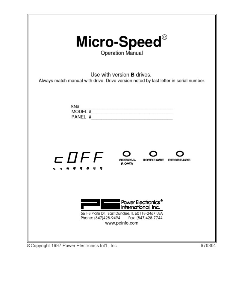 Micro-speed® Manual for Micro-speed's with version "B" program. Page 2