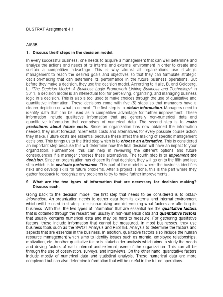 quantitative information. These decisions come with five (5) steps so that managers have a