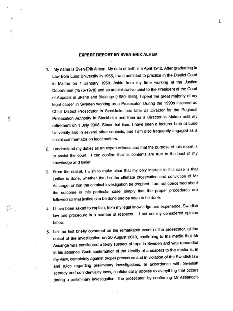 Sven-erik alhem: my only interest in this case is that justice is done. Such confirmation of the identity of a suspect to the media is against proper procedure. He says the prosecutor's actions are in violation of Swedish law and rules.