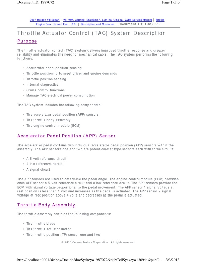 system. The ECM determines the drivers intent and then calculates the appropriate throttle