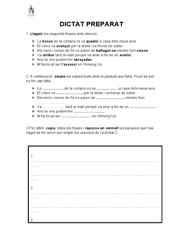 2. A continuació omple els espais buits amb la paraula que falta. Fixa’t bé per