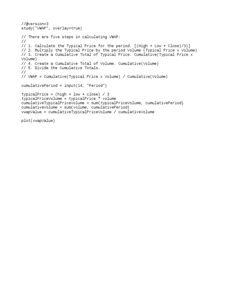 // VWAP = Cumulative(Typical Price x Volume) / Cumulative(Volume)