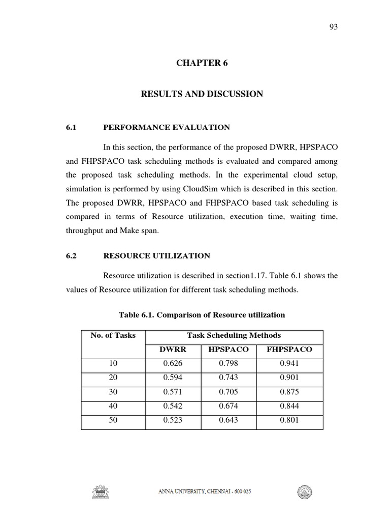 Resource utilization is described in section1.17. Table 6.1 shows the