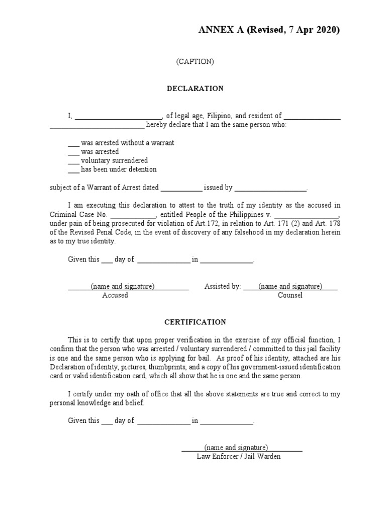 is one and the same person who is applying for bail. As proof of his identity, attached are his