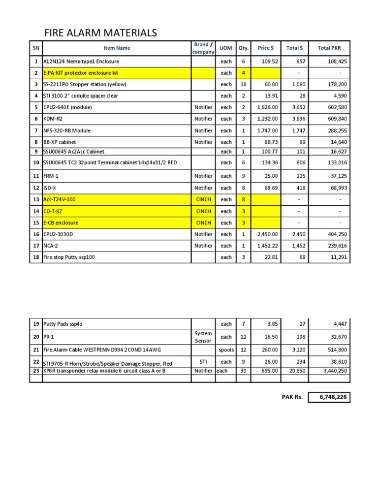 FIRE ALARM MATERIALS