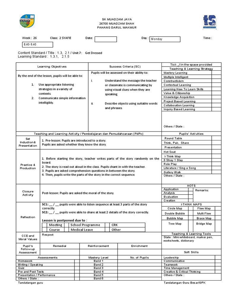 Week : 26 Class: 2 SYAFIE Date: Day : Wednesday Time :