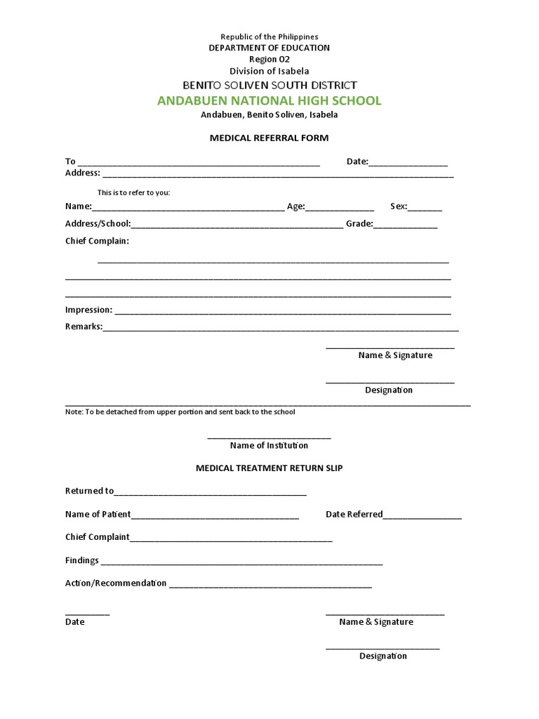 MEDICAL TREATMENT RETURN SLIP