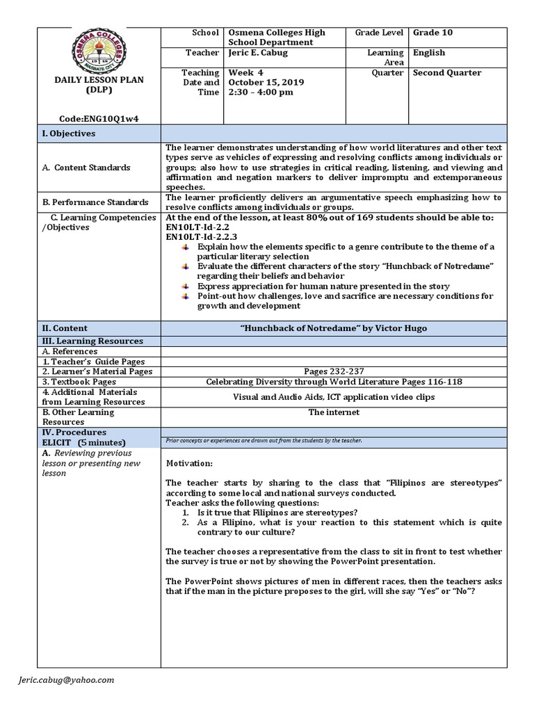C. Learning Competencies At the end of the lesson, at least 80% out of 169 students should be able to: