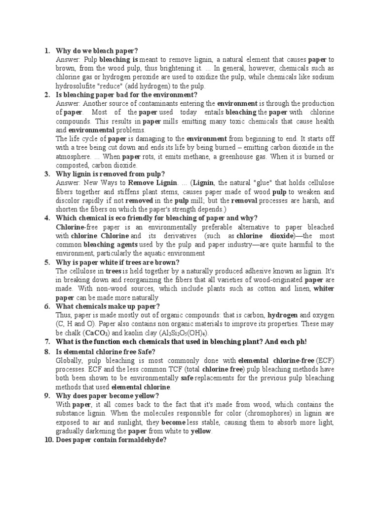 brown, from the wood pulp, thus brightening it. ... In general, however, chemicals such as