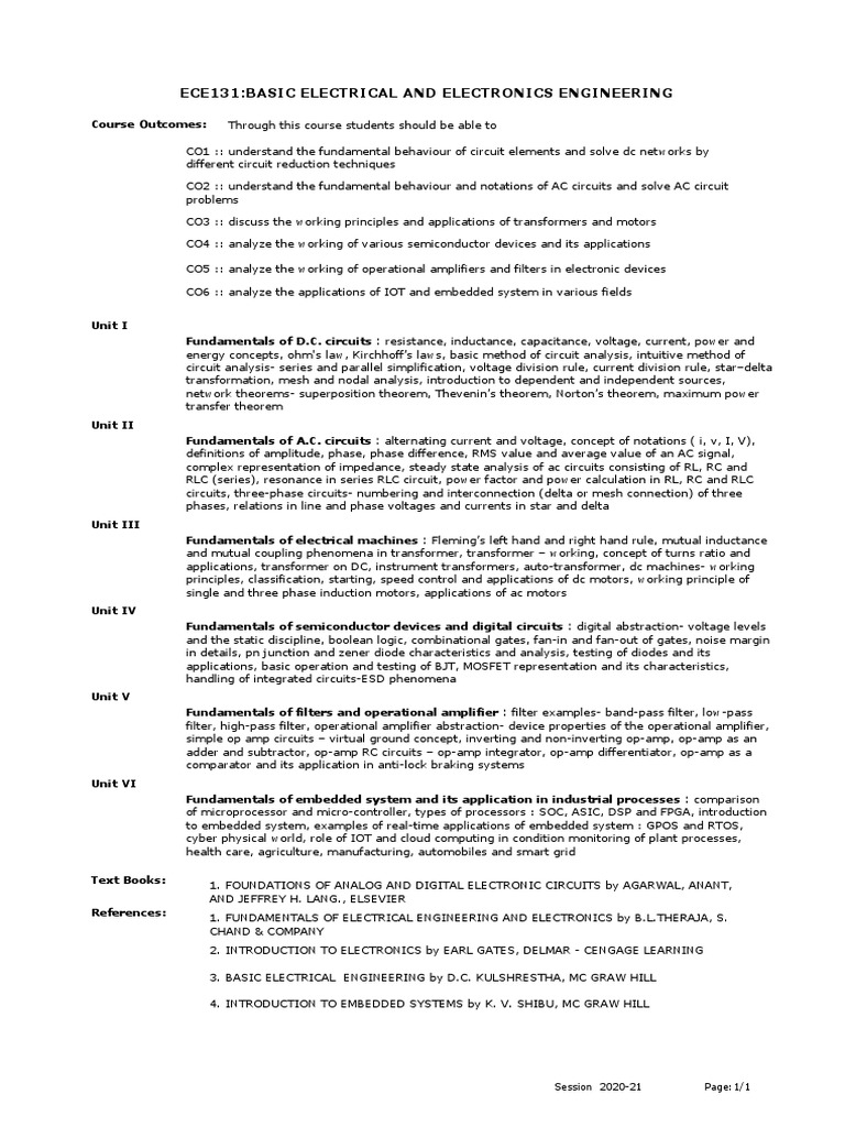 ECE131:BASIC ELECTRICAL AND ELECTRONICS ENGINEERING