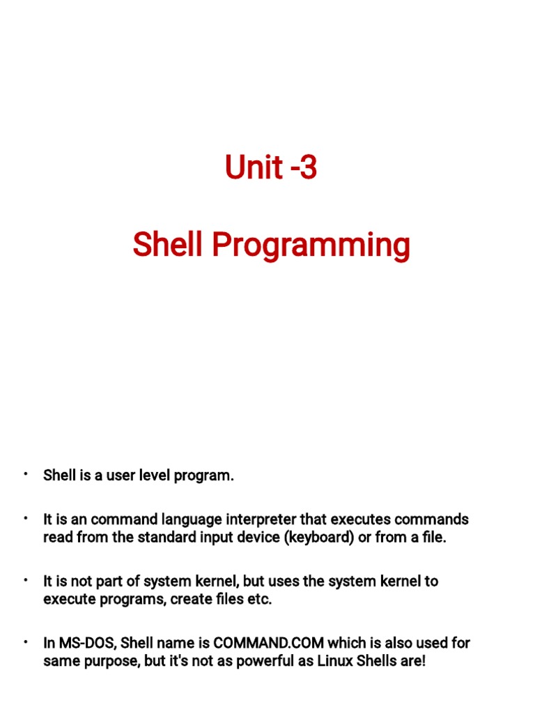 • In MS-DOS, Shell name is COMMAND.COM which is also used for