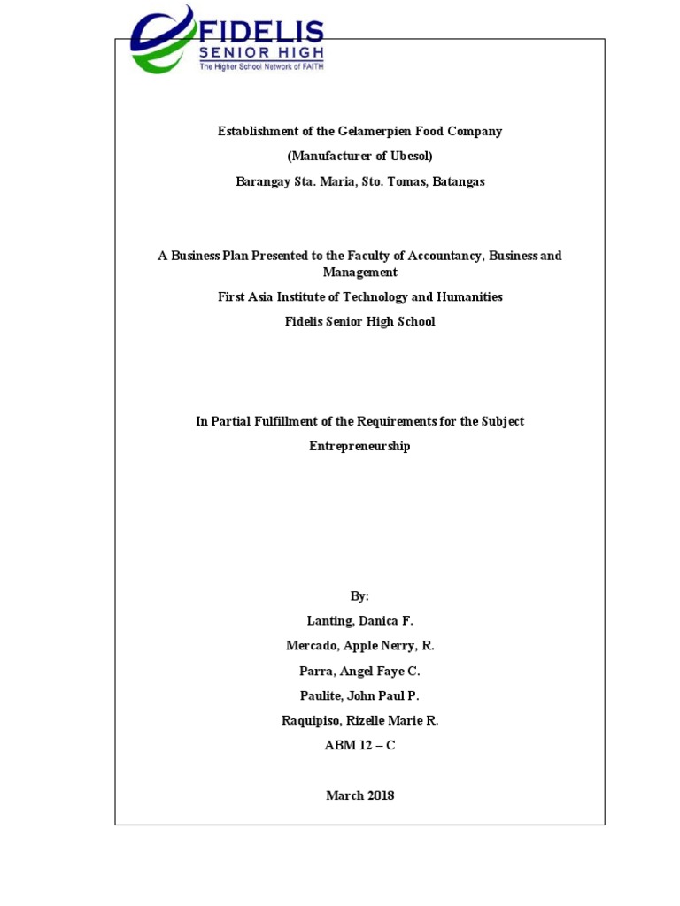 imported ones, Ubesol may be patronized by the customers as it is locally made and