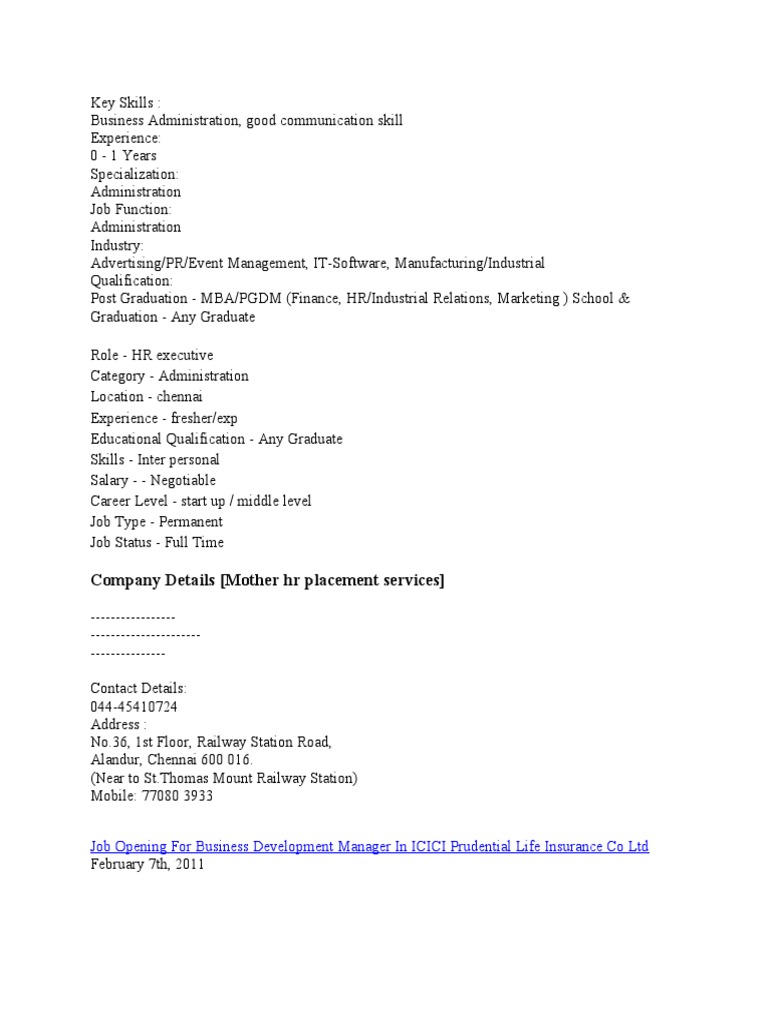 Education:UG – Any Graduate – Any Specialization, PG – MBA,PGDM – Any Specialization