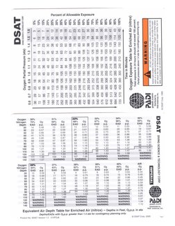 Oxygen Exposure Table: Contains a table outlining the limits for oxygen exposure during enriched air dives, indicating safe exposure durations at various depths.