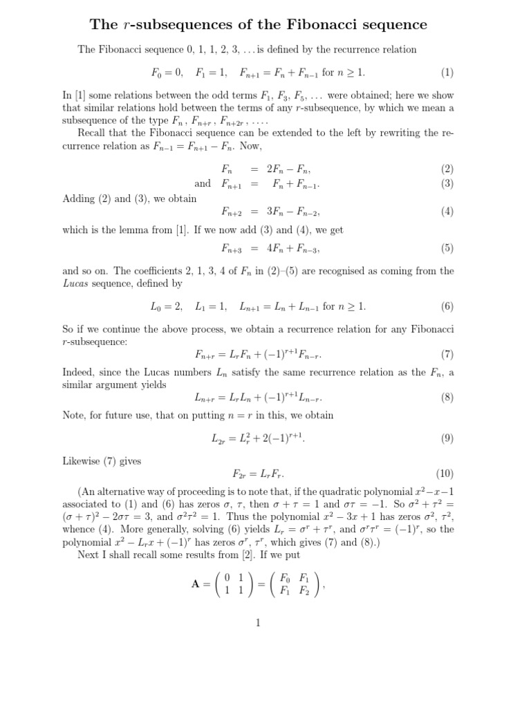 F0 = 0, F1 = 1, Fn+1 = Fn + Fn−1 for n ≥ 1. (1)