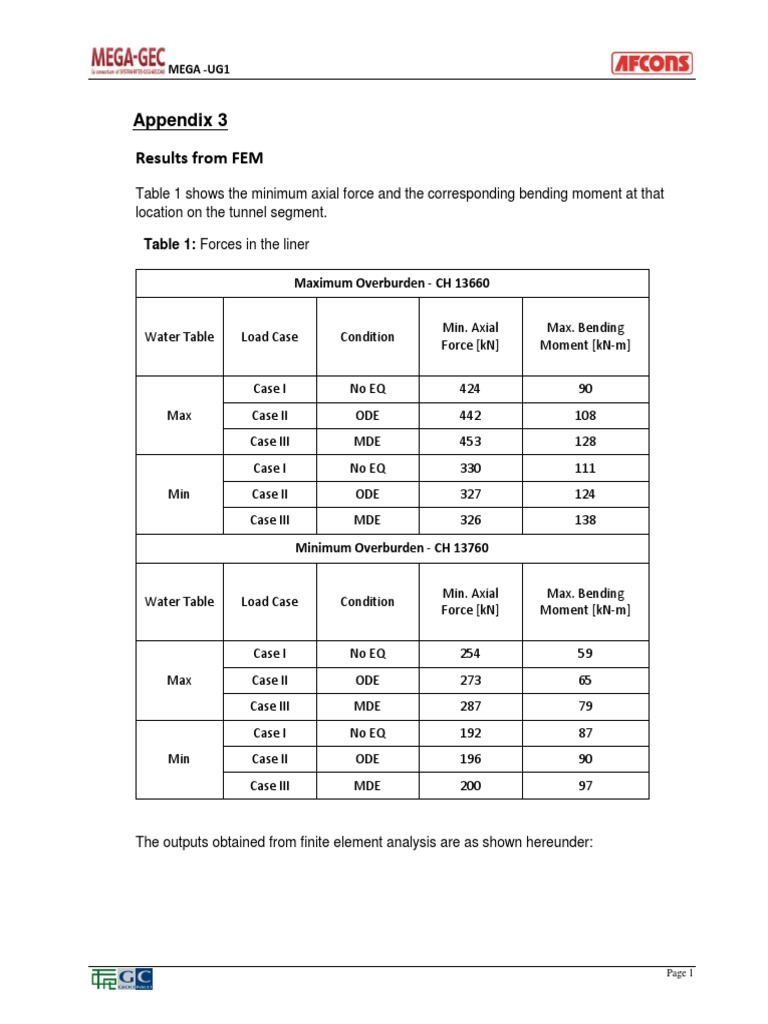 Table 1 shows the minimum axial force and the corresponding bending moment at that