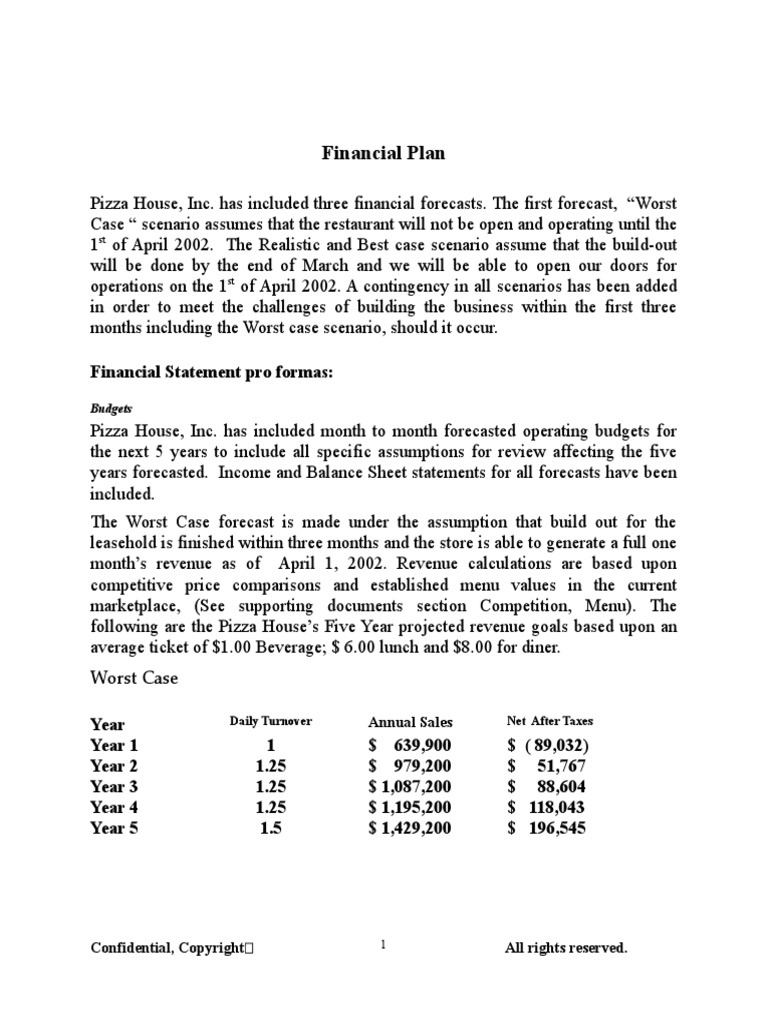Pizza House, Inc. has included three financial forecasts. The first forecast, “Worst
