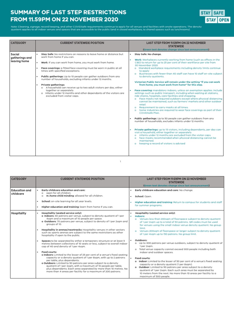 • Face coverings: a fitted face covering must be worn in public at all o Standard workplace requirements including density limits continue