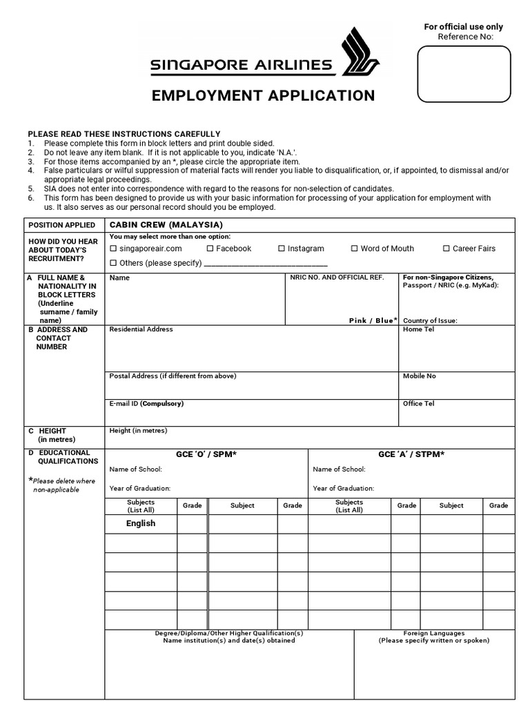 7. Do you have any relatives who are currently employed by SIA? If yes, please give